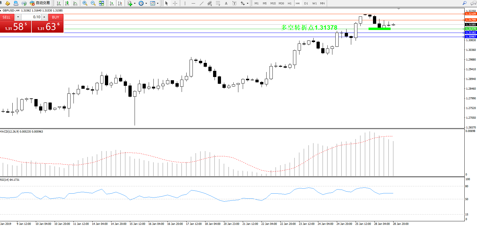 交易策略:1.31378上方看涨,目标1.317991.32109